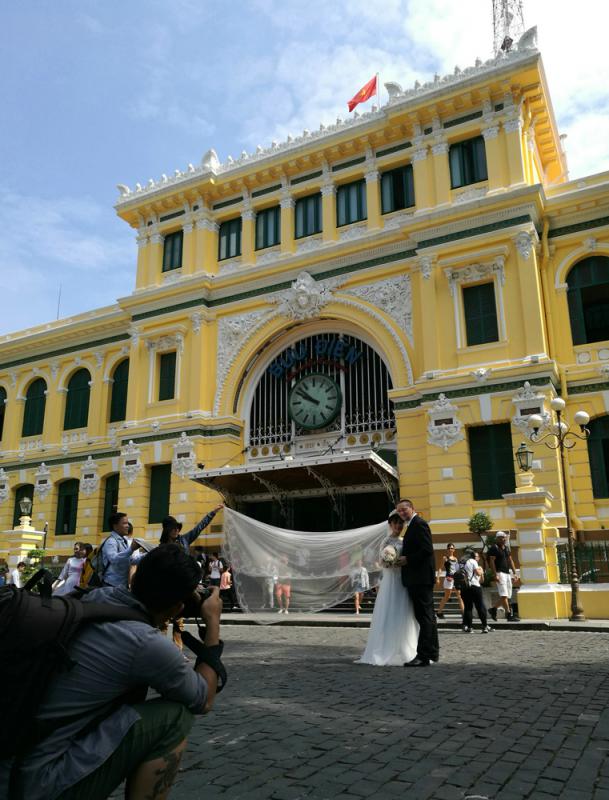 圖:常有新人以西貢郵政總局作背景拍攝婚照
