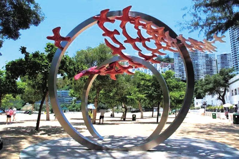 就在離紅影樹不遠處,發現沙灘上多了一處境點,走近看,是關於紀念蕭紅的地標,命名「飛鳥三十一」。這具作品獲最佳設計大獎,由南區區議會倡議為紀念蕭紅設立,原來已在去年六月泳季開始時落成,剛好滿周年多一些。這是香港文藝界的重要事情,也許傳媒報道不多,以至我這個蕭紅的讀者一年後才知道。