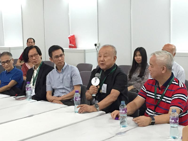 圖:黃孝逵(前排左起)、熊海、何家英、劉國松、陳成球等多位水墨畫名家出席交流會,探討水墨畫的發展方向 大公報記者王豐鈴攝