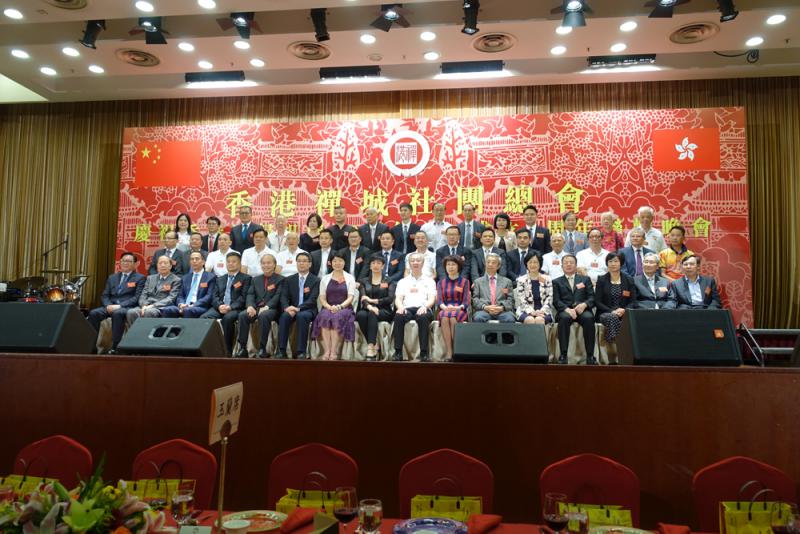 圖:香港禪城社團總會舉行慶祝香港回歸20周年暨成立一周年聯歡晚會,賓主合影 /大公報記者郭艷媚攝