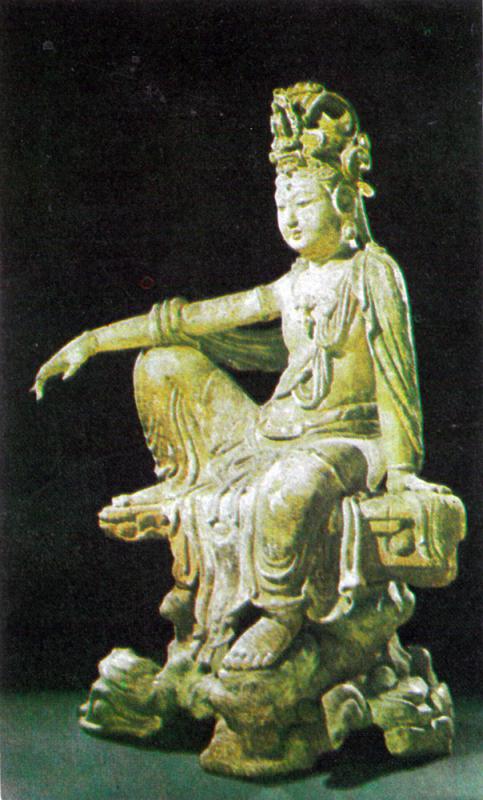 從藝術和欣賞的角度看,最自然傳神、平易近人、而雕刻手法卓絕者,首推宋代作品。木刻像動輒高逾五十公分,大多施彩,流麗富韻律感。宋代擺脫唐代注重奢華金銀器的影響,發展木刻藝術。像附圖的宋代木刻觀音像,豎起右膝作「輪王坐」,坐姿閒適,親切隨意。有淺薄無知者,竟胡言此非宋刻,亦非觀音,而是「偽品」;蓋赤足豎膝而坐,乃「市井之徒和苦力等所為,菩薩哪裏會這樣坐姿不雅」。其實,若肯鑽研,當知自五代至宋,皆時興這種觀音造型,以示不拘泥執著,非高高在上。古天竺(今印度)佛家稱之為「輪王坐」,表示王者對臣民皆親切無礙。觀音為「諸天王之母」;此坐姿形相表現出「思維觀音」正深思,發菩提心,以慈悲為懷。