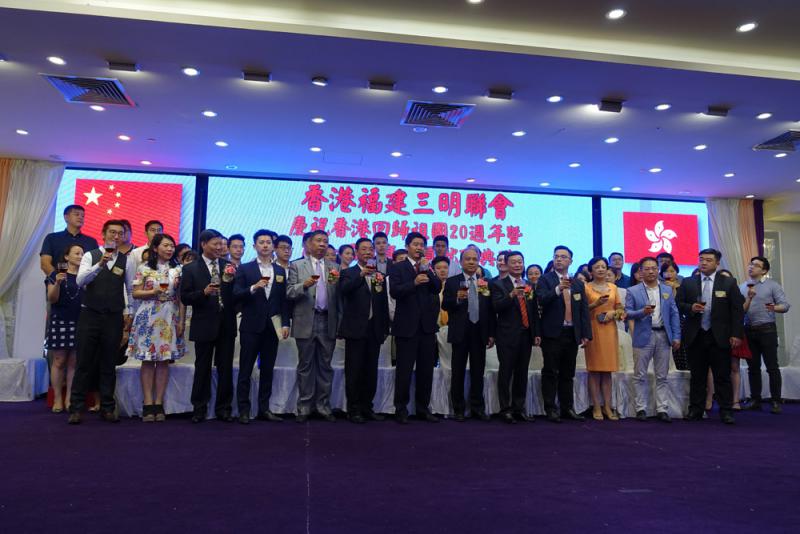 圖:香港福建三明聯會舉行慶祝香港回歸祖國20周年暨青年委員會成立就職典禮祝酒儀式 大公報記者郭艷媚攝