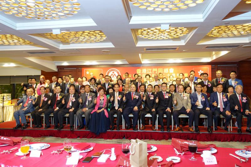 圖:香港江門同鄉會慶祝香港回歸20周年暨第十八屆理監事就職典禮賓主合影 大公報記者郭艷媚攝