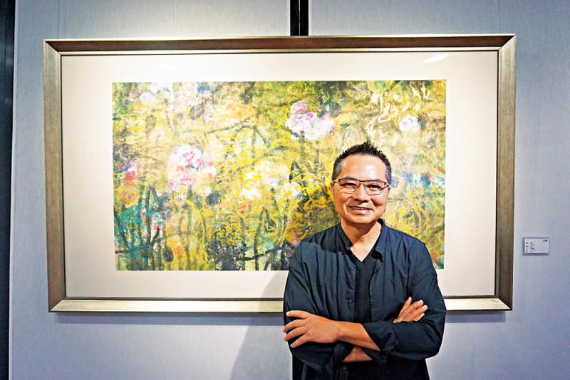 林天行接受本報記者專訪,細說其獨特的「天行荷」。三十幅綽約多姿的荷花畫將展場裝點成靜謐「荷塘」。細看畫作,圓滿的構圖代替傳統國畫的「留白」,時而厚重時而清雅的大面積色、光、墨交織在一起。
