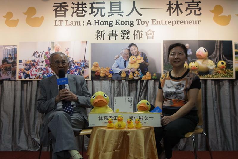 【大公報訊】記者劉毅報道:香港企業家林亮創造的「小黃鴨」於一九四八年面世,是香港最早的塑膠玩具之一。在超過半個世紀的歲月裏,逐漸成為香港人的集體回憶。今年九十三歲的林亮、夫人戚小彬昨日舉辦《香港玩具人─林亮》新書發布會,以在玩具行業拚搏七十年、九十歲再創業的勵志故事,激勵年輕人勇於為夢想打拚。