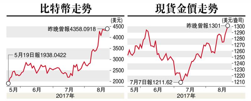 虛擬貨幣比特幣走勢跟隨金融市場波動,周四一度創出新高4477.3848美元,到周五則回軟至4358.0918美元。而新比特幣Bitcoin Cash曾升穿500美元,稍後報492美元。