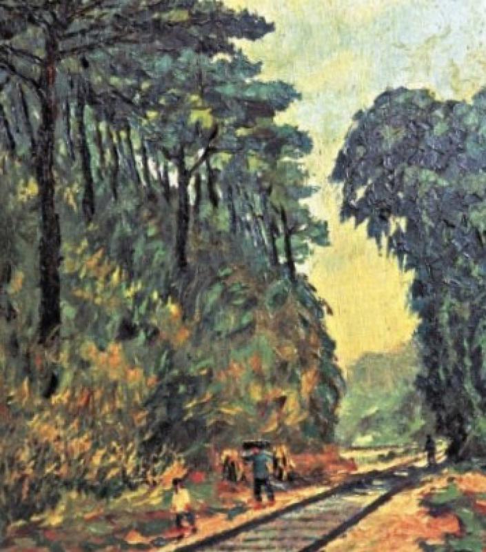 圖:李流丹油畫作品《鐵路線上》/作者供圖