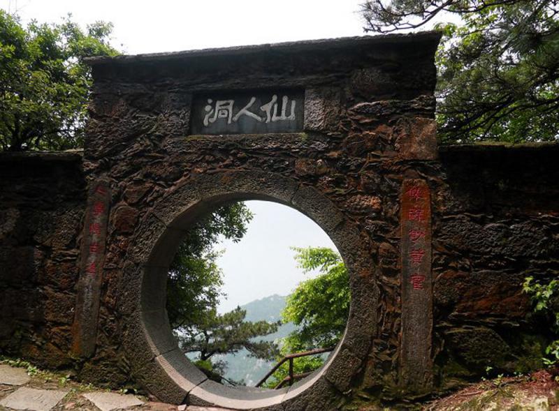 仙人洞的得名應為那堵石牆上的一個圓圓的月亮門,月亮門上刻着三個大字「仙人洞」。其實洞並不在那裏。出了月亮門,有青石板鋪成的台階,拐着繞着,順着山勢慢行,越過那塊下邊刻着「縱覽雲飛」的大石,才來到仙人洞。想起劉禹錫的《陋室銘》:「山不在高,有仙則名。水不在深,有龍則靈。」仙人洞不大不深不奇不怪,正應了有仙則靈。