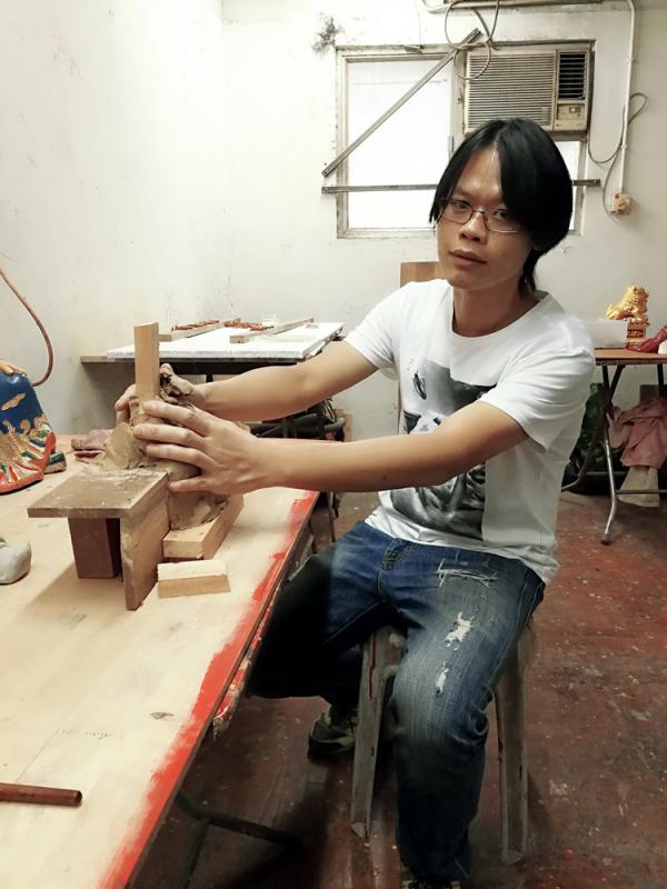 圖:王彥發說,通常神像在製作完成後,會貼上金箔以示尊貴