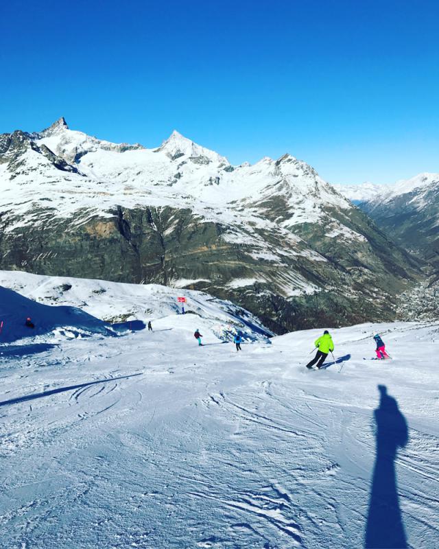 站在起點,右手邊是雄偉的馬特洪峰,左手邊則是不斷「呼嘯」而下的滑雪客們,其中不乏身高一米的歐洲幼童。滿懷着對實現「在阿爾卑斯山間滑雪」的願望的興奮,與克服「從這麼高的山上往下滑」的恐懼的激動,我俯身下衝。原來,在群山中自由滑行的感覺是此等刺激與澎湃,心無雜念,耳旁聽風,腳下踏雪,眼前閃不盡冰川峰巒,飛馳亦如翱翔。當然,還要拿出求生的意志,才能在跌跌撞撞中滑到山下。