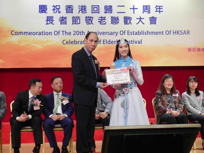圖:尖沙咀街坊福利會理事長蘇仲平(左)致送感謝狀予表演嘉賓 大公報記者徐曉彤攝