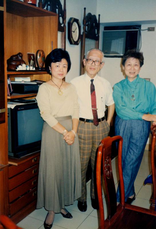 圖:鍾玲(左)、余光中(中)伉儷於一九九○年代在鍾玲高雄家中 受訪者供圖