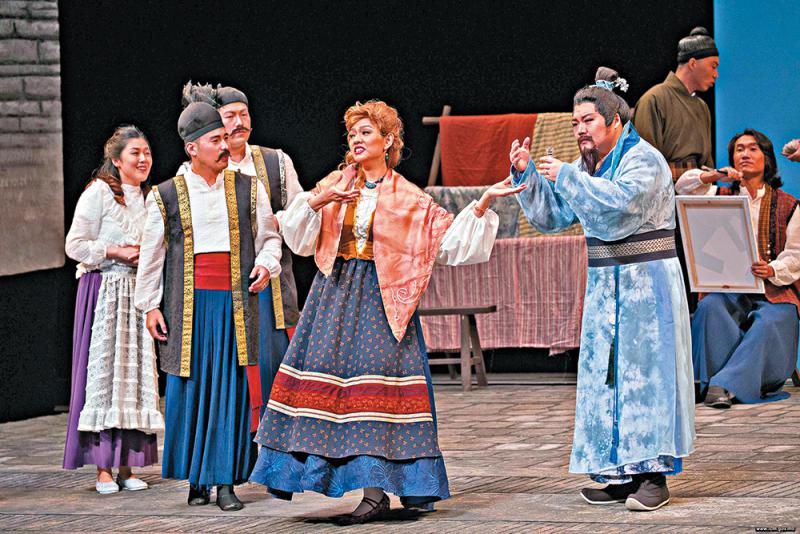 其實,這部澳門歌劇最大的「硬傷」,仍在於劉晨晨所寫的音樂,聽不到有什麼澳門色彩,除了在對白與歌詞中的「聖安多尼教堂」、「葡國土風舞」,一兩句葡語和廣東話,音樂中的中國元素卻不等於澳門元素,澳門作為嶺南文化的一支,能讓人感受得到澳門色彩的音樂應有不少,如粵曲、鹹水歌、說唱南音、白欖、廣東音樂……甚至天主教音樂,葡萄牙音樂,堪稱豐富;筆者首演時已提出,重演未作修改,一沿故舊,浪費大好機會了,實在可惜。至於重演的場刊內容,完全沒有了首演時歌劇內容的分場、音樂的資料等,這卻是「新」的做法,如此倒退,難道有助觀眾對這部仍可說是「新」的歌劇的欣賞嗎? 圖:澳門文化局提供