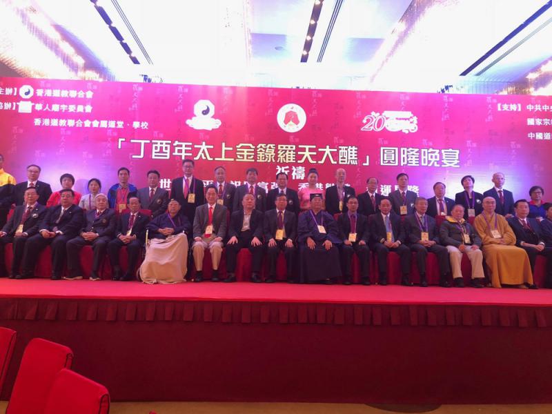 圖:「丁酉年太上金籙羅天大醮圓隆暨香港道教聯合會創會五十周年」慶典,賓主合影\大公報記者郭艷媚攝