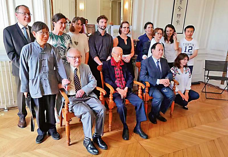 圖:今年六月,饒公(前排坐者,中)與汪德邁(前排坐者,左)等法國學者在巴黎聚首\饒學聯匯供圖