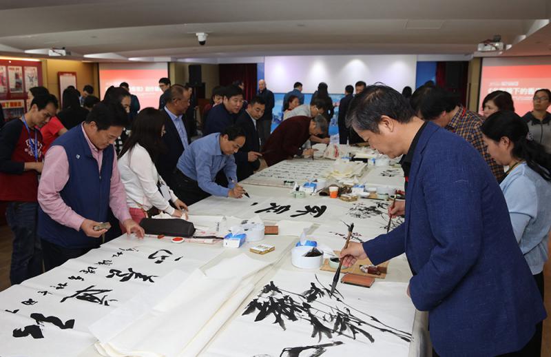 由中國文學藝術界聯合會書記處書記陳建文率隊、來自境內外近五十位書畫名家,繼前日在「首屆香港青少年書法大獎賽」上指導香港中小學生提筆揮毫,現場傳播書法藝術,於昨日走進大公報,以「名家筆下的香港」為主題,即席創作,書寫香江情懷。\大公報記者 湯艾加、王豐鈴、李亞清(文) 蔡文豪(圖)