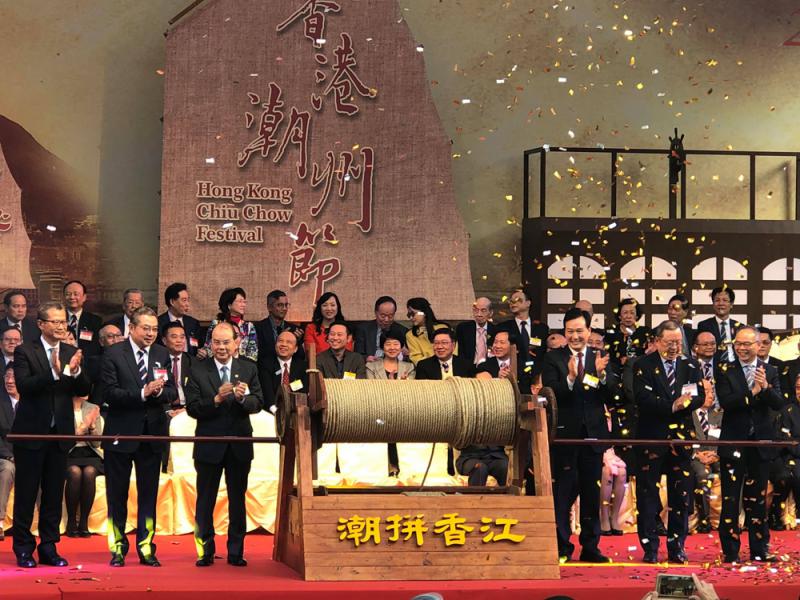 第二屆香港潮州節以「不忘初心.潮拼香江」為主題,於本月6至10日(一連五天)在中環遮打花園舉行。本屆潮州節由香港潮屬社團總會主辦,日前舉行開幕儀式,並邀請中聯辦副主任林武,政務司司長張建宗,財政司司長陳茂波,民政事務局局長劉江華主禮。主席陳幼南及監事會主席林建岳歡迎來自各界的人士和潮籍鄉親,並不忘提醒新一代潮人,要知道自己的根在哪裏。\大公報記者 郭艷媚(文/圖)