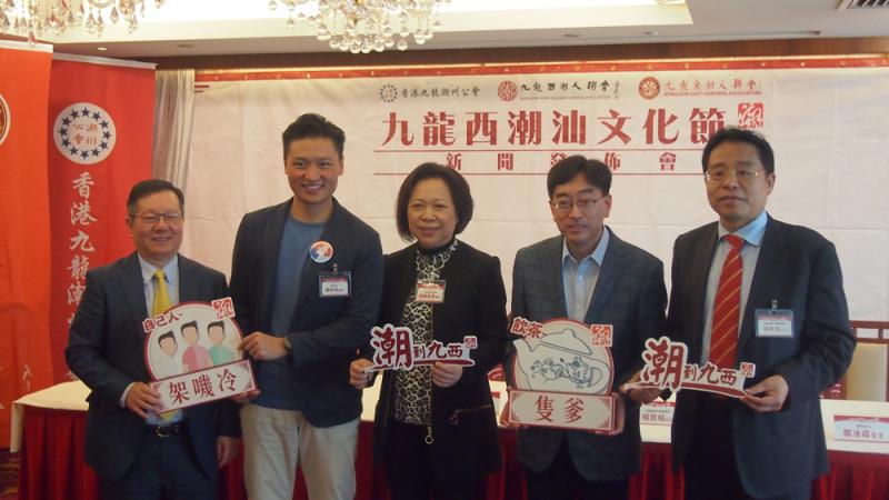 圖:今次「九龍西潮汕文化節」,仲搵嚟前食物及衛生局局長高永文(右二)同深水埗區議員鄭泳舜(左二)擔任推廣大使\大公報記者陳才逸攝