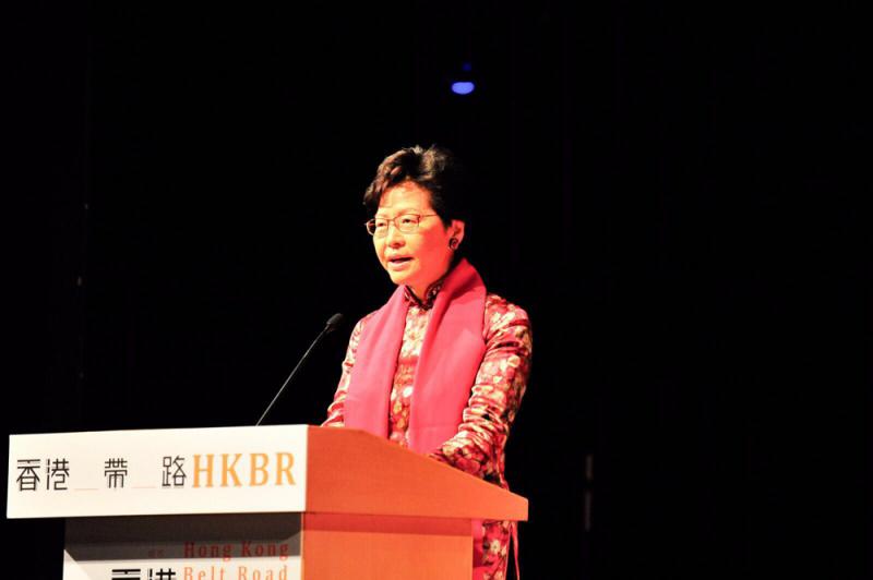 圖:香港行政長官林鄭月娥於開幕禮上致辭