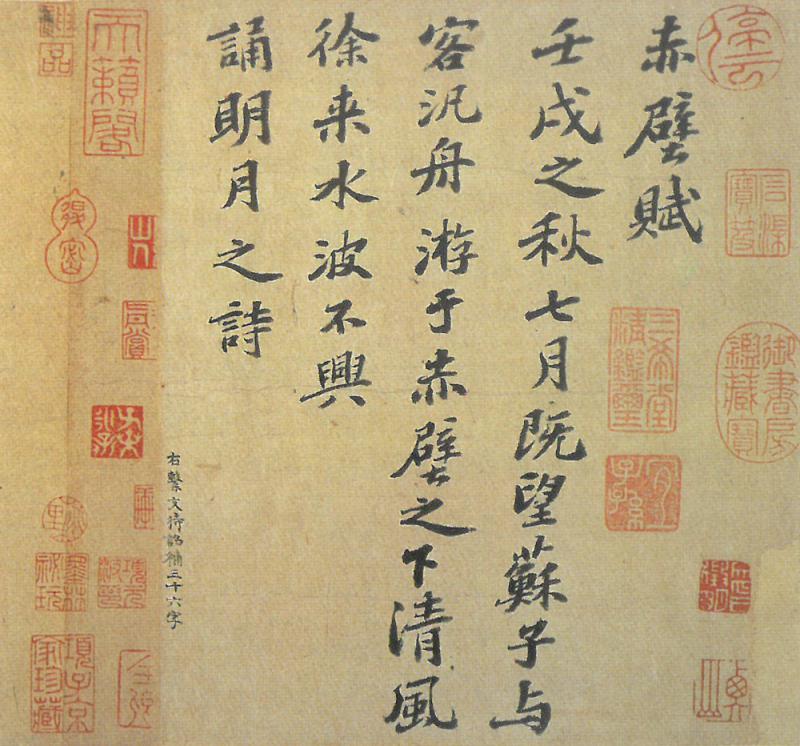 筆者最喜愛蘇軾所書《赤壁賦》(見附圖局部),真跡亦藏博物院,直抒胸臆,豪宕秀逸。