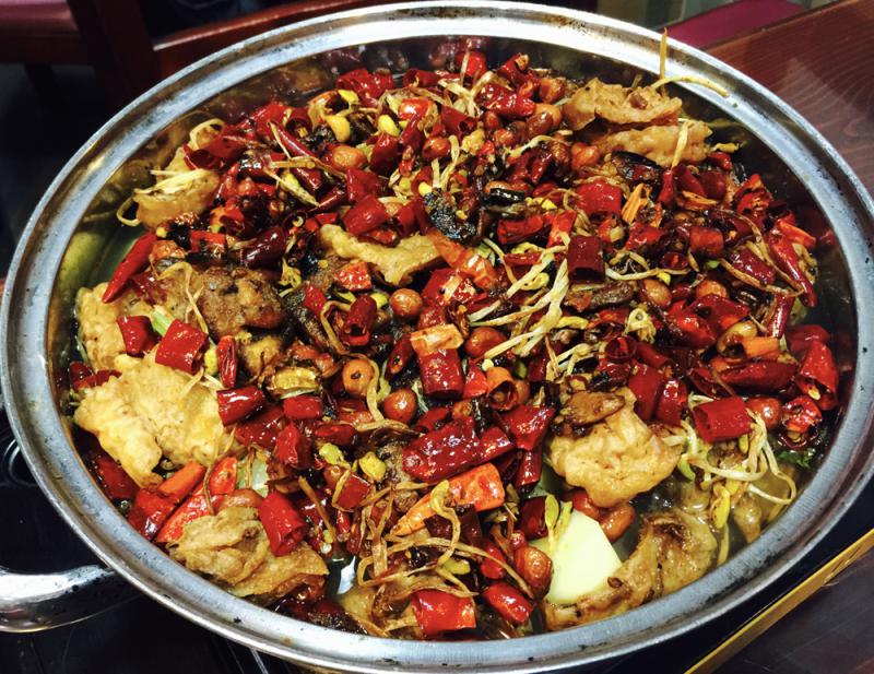 這兩間相比,「爸爸辣」人氣更旺,這裏永遠沒有深夜的寂寥。這裏的毛血旺內容豐富:血塊、牛百葉、豆芽、筍片、腰花……滿滿一盆,這裏的乾鍋肥腸中的豬大腸夠脆口乾身,嚼得出焦香。再加上有位性格開朗、作風豪爽、可與你共飲幾大杯任何酒的老闆娘,已大勝「小辣椒」三條街。