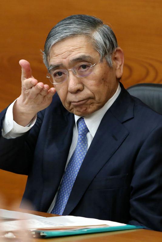圖:日央行維持每年買80萬億日圓的日本國債。圖為日央行行長黑田東彥