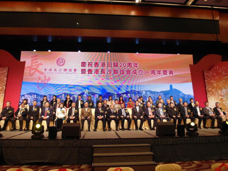圖:香港長沙聯誼會日前舉行「慶祝香港回歸20周年暨香港長沙聯誼會成立一周年慶典」,賓主合影