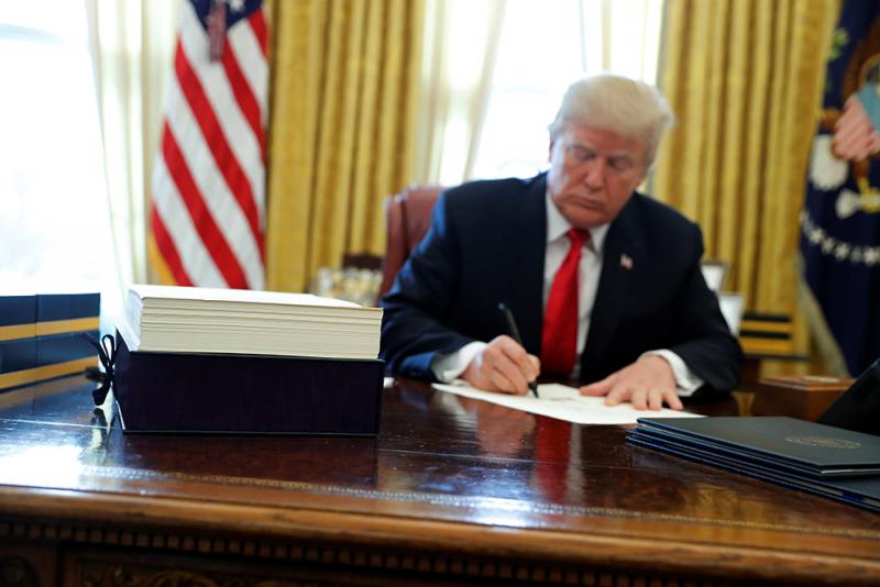 圖:美國總統特朗普上周五在白宮簽署了稅改法案。為美國企業和人民帶來三十年來最大減稅,經濟學家與分析員普遍不看好稅改的效果