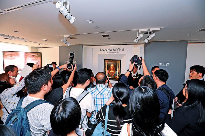 目前全球唯一一幅由私人收藏的達芬奇作品《救世主》十月中旬在香港佳士得藝廊展出,三日半的展期保守錄得共逾三千人次入場參觀,香港是此畫作全球巡展唯一亞洲城市。十一月十五日《救世主》在紐約拍賣,以4.503億美元(約35.16億港元)成交,刷新歷來公開拍賣及私人出售藝術品的最高成交價紀錄,比行方早先估計的一億美元(約7.8億港元)成交價高出超過三倍。拍賣過程激烈,持續長達十九分鐘,經過四十五口承價後,最終由匿名買家透過電話委託競得。