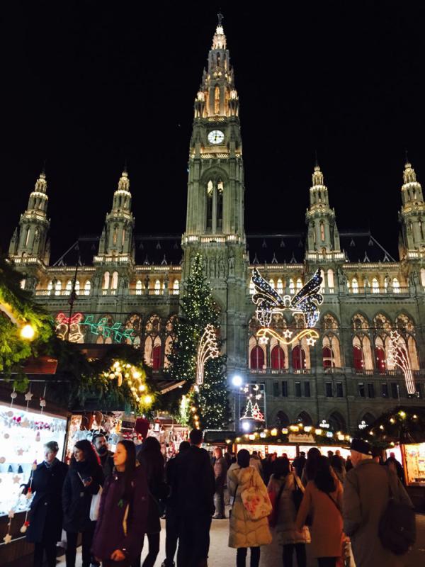 維也納的聖誕市集隨處可見,每年從十一月中旬就開始陸陸續續開設起來。有像市政廳門前廣場上超大一片的,也有像聖史蒂芬大教堂、美泉宮和藝術史博物館門前一小片一小片的,有集吃喝玩樂綜合於一體的,有專賣自家製食品和酒的,也有專賣手工藝品的。