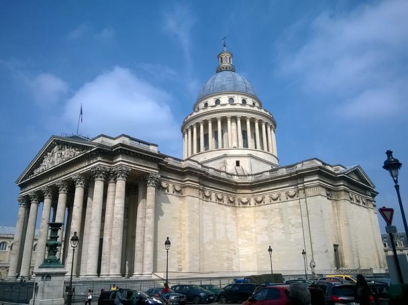 剛搬到巴黎時,從我們家的陽台望出去,不遠處便有一個用白色塑料包起來的圓形屋頂,在紅色或者其他深色的屋頂中顯得尤為突出。後來才知道,那便是先賢祠。