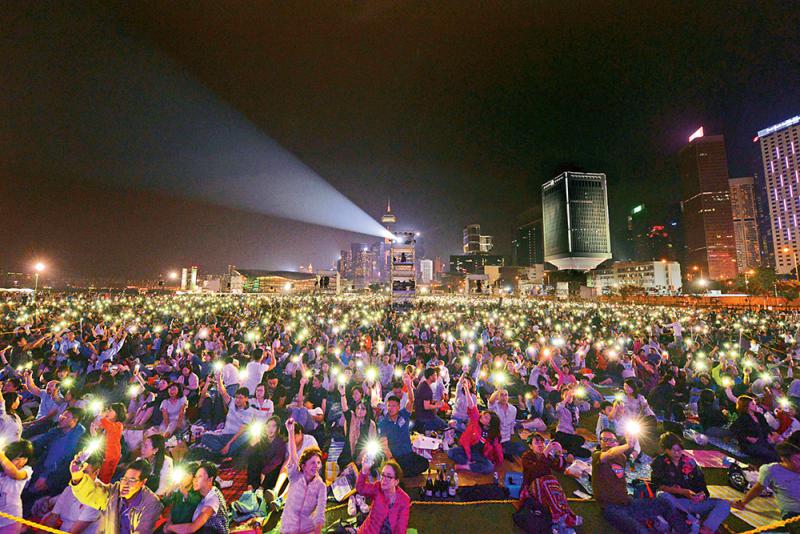 圖:太古「港樂.星光.交響曲」觀眾隨着音樂搖動亮着屏幕的手機場面 Andy Lam攝