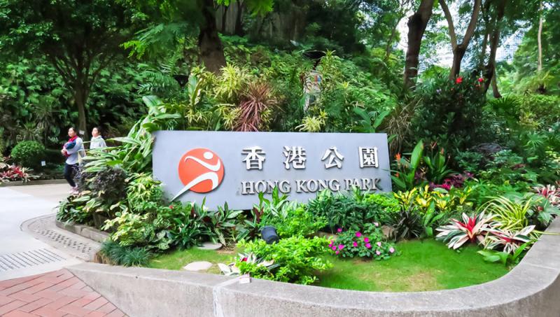 一日,我往「香港公園」一遊,覽閱都市風光。「香港公園」位處港島繁盛商業區,高聳商廈和豪華住宅環繞四周,在繁華市中心出現如此廣闊的綠色空間,堪稱「都會中的一片綠洲」。公園入口處矗立「香港公園」銀色大字的標徽,綠樹繁花襯托,標誌醒目突出。人們入場時都會在此駐足拍照留影,記下到此一遊的遊蹤。