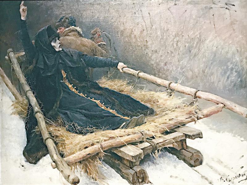 圖:蘇里科夫作品《雪橇上的女貴族莫洛佐娃》,布面油畫,一八八六年