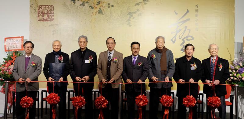 圖:李錦賢(左起)、鄺啟濤、連登、馬逢國、陳承緯、施子清、許鴻基、王齊樂,共同為展覽開幕剪綵