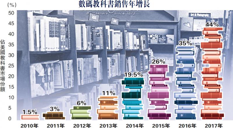 美國學院商店協會最近對有關教科書價格的調查發現,大學商店的教科書售價開始下滑,2015年之前平均每本教科書售82美元,近兩年已降至每本80美元,雖然只是減少2美元,但確實反映網上購買教科書盛行,對實體商店的教科書售價造成壓力。 美國官方數字亦反映這現象,據美國勞工部去年九月公布的數據,教育書籍和教學供應價格按年跌1.6%,下跌速度是自1967年來最急。去年10月和11月分別再跌1.3%及0.5%。