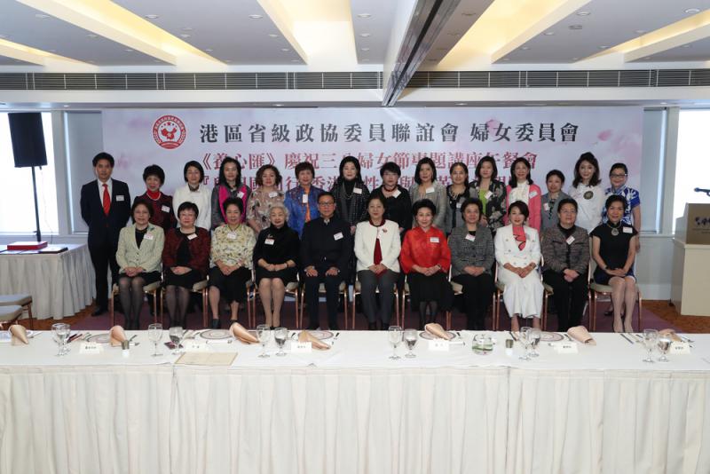 【大公報訊】港區省級政協委員聯誼會婦女委員會昨辦午宴講座,主題為「《養心匯》慶祝三八婦女節『與祖國同行─香港女性參與改革開放親歷』」。該會主席鄭翔玲,全國政協委員董吳玲玲、寧波市政協委員應炳囡擔任主講嘉賓,分享改革開放以來,香港女性與祖國同行,貢獻國家的心路歷程,呼籲姐妹們自強不息,抓住國家發展的新機遇,砥礪前行。