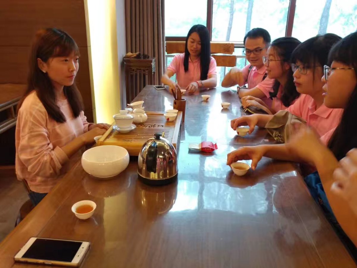 香江名苑:在集茶葉種植、研發、深加工、茶文化傳播交流、觀光旅遊於一體的茶文化體驗式休閒度假區中,同學們學習了岩茶的歷史、品嘗了不同種類的岩茶,大紅袍非遺傳承人指導下體驗搖青和炒青,觀看精彩的鬥茶表演,從理論到製茶、品茶、茶藝,進行全方位學習。