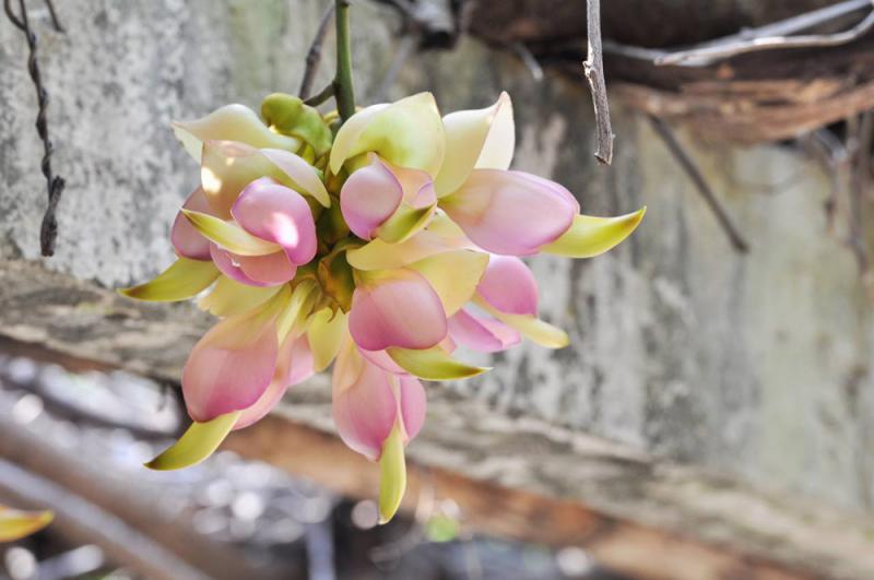 鳴翠谷的禾雀花,最令人驚嘆的是它頑強的生命力。一根藤蔓,被從中劈開,卻成為兩根藤蔓,交互着攀上樹頂。另一根藤蔓,從巨石中穿出,花兒猶如開在石頭上。在龍洞裏,我觸摸到「藤王」幾近石化的粗壯根系,不知那曲曲繞繞的藤蔓,如何穿過疊疊石層,懷着新生命的希冀,一寸寸鋪排綠色。