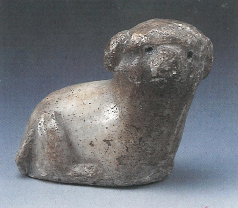 我國漢代以前的文物,絕少見有狗的造型。那時權貴養的多是獵犬,作狩獵之用。魏晉南北朝也不例外。正如晉代詩人張華(張茂先)詠當時的獵犬:「如黃批狡兔,青骹撮飛雉,鵠鷺不盡收,鳬鷖安足視。」東漢的畫像石和漆畫,偶見有獵犬出現;反而西漢珍罕陶塑品早已以家犬作主題,傳世迄今者極稀。