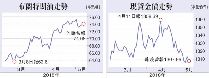 市場關注美國可能再度向伊朗實施制裁,油價周五反覆靠穩。紐約期油價格曾跌0.45%,每桶報68.12美元,其後倒升至68.92美元水平;布蘭特期油價格周五同樣曾跌0.52%,每桶報73.8美元,其後又倒升至74.08美元。