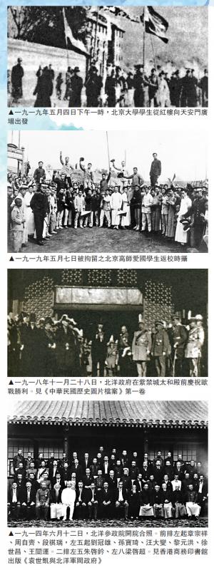 五月四日,北京學生遊行示威,反對西方列強無理決定和北洋軍閥政府妥協政策。當學生們在天安門集會時,北洋政府步軍統領和軍警總監帶軍警聞訊趕到,出示大總統令,企圖解散學生隊伍。學生們高呼「內懲國賊、外爭國權」等口號,遊行前往東交民巷使館區。由於使館區外國巡捕和北洋政府軍警阻撓,遊行學生退出東交民巷,直奔東單趙家樓胡同時任交通總長曹汝霖宅,發生「火燒趙家樓」。當時曹汝霖負責辦理部分權益讓予日本,與貨幣局總裁陸宗輿、駐日公使章宗祥等親日派人物,被稱為「賣國賊」。北洋政府派出大隊軍警,逮捕學生市民三十二人。自從一八四○年以來,中國人民積壓已久對帝國主義的仇恨、對腐朽無能的執政者的怨氣,終於爆發出來。一場聲勢浩大的反帝愛國運動在北京爆發,並迅速遍及全國主要城市。
