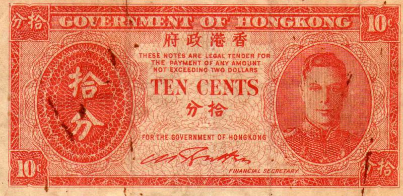 圖:五十年代由港英政府發行的十仙(一毫)紙幣\作者供圖