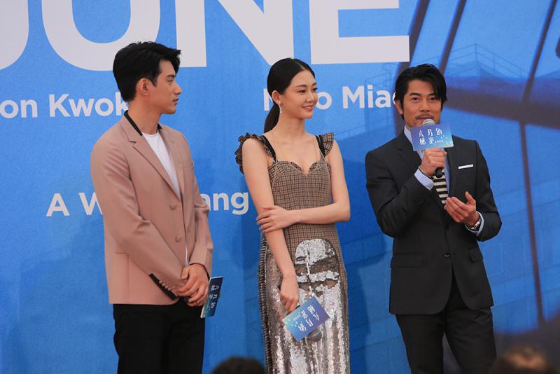 圖:郭富城(右起)、苗苗及吳建飛在康城發布會上大談拍攝感受