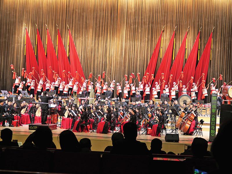 圖:陝西省廣播電視民族樂團演奏《永遠的山丹丹》,四十一把嗩吶奏響序曲