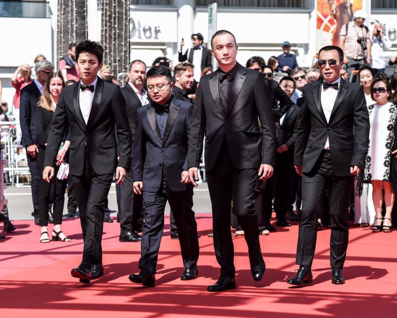 圖:《地球最後的夜晚》導演畢贛(左二)攜主演黃覺(右二)、李鴻其(左一)、陳永忠(右一)亮相康城紅地氈