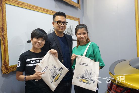 參觀者通過登記可獲得Peter為Volkswagen設計的限量版手挽袋(大公報記者謝敏嫻攝)