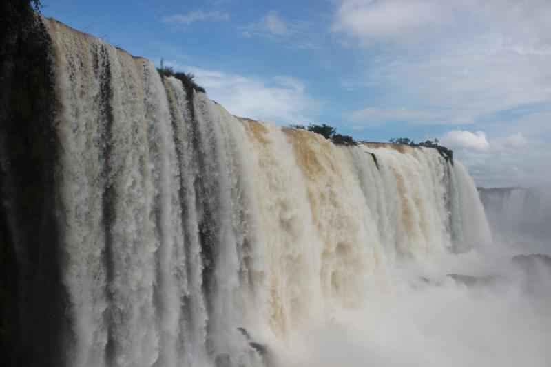 位於巴西和阿根廷邊界上的伊瓜蘇瀑布,同東非維多利亞瀑布及美加的尼亞加拉瀑布並稱為世界三大瀑布,它由近三百股大小瀑布和急流共同組成,總寬度四公里,為世界之最。被兩個國家共同守護,巴西境內佔有四分之一,瀑布的上游則在阿根廷一側,彼此遙望,景致各有不同。