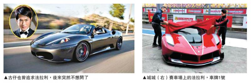 城城收藏的法拉利包括賽車版,早年他擁有的「幽靈之子」,是全球限量二十五輛的法拉利終極性能馬王FXX K的昇華版,更是城城的夢想號,因為很有收藏價值,是一件藝術品,也是一種投資,但他不會用錢去衡量。城城是該品牌的超級特許客戶,那次他應品牌總裁邀請,到上海取車並試車,並配上1號車牌,凸顯天王霸氣No.1,網友直呼「帥爆了」。
