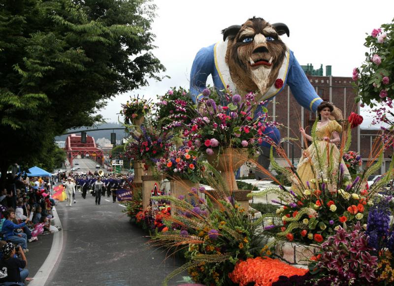 哈里.雷因是富有遠見的市長,在他的倡導下,波特蘭於一九○七年開始舉辦玫瑰節慶祝活動,旨在擴大該城影響。花車大遊行是玫瑰節歡慶的最高潮,幾十輛花車、上百個民間團體組成遊行隊伍,着節日盛裝,浩浩蕩蕩、載歌載舞地穿過市中心,沿途數十萬觀眾為之欣喜若狂!最耀眼的明星當數「玫瑰皇后」,她是在大遊行開始前才從「玫瑰王室」成員中選出的,是波特蘭和玫瑰節的象徵。「玫瑰王室」共有十五名成員,全是波特蘭地區各中學高中畢業班的女生。挑選「王室」成員的程序十分嚴格,因為參選者眾多,報名申請的手續必須在頭一年十二月完成。評選機構於三月份公布「王室」名單,當選者統統為品學兼優的好學生。「玫瑰節」開始前,她們要參加諸多公益活動,而作為獎勵,全體「王室」成員都將獲得上大學的獎學金。「玫瑰皇后」所穫榮譽更加令人驚羨:一面刻有其名字及勝選年度的菱形金牌,將被嵌到「皇后小徑」的紅磚路面上,永遠留在國際玫瑰實驗園裏。